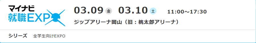 会社ニュース ホーム 会社ニュース 2018年3月9日「マイナビ就職EXPO」に参加します。(岡山県) 新卒採用 2018.03.12 2018年3月9日「マイナビ就職EXPO」に参加します。(岡山県) ジップアリーナ岡山で開催される「マイナビ就職EXPO 」にサンキ・ウエルビィもブース出店いたします。 説明会当日は、先輩スタッフや人事担当が直接あなたの質問・相談に応じます。 この機会にぜひお越しください。 【日時】 2018年3月9日(金)11:00 ~ 17:30 【場所】 ジップアリーナ岡山 (岡山県岡山市北区いずみ町2-1) 詳細は こちら 前へ 一覧へ戻る 次へ